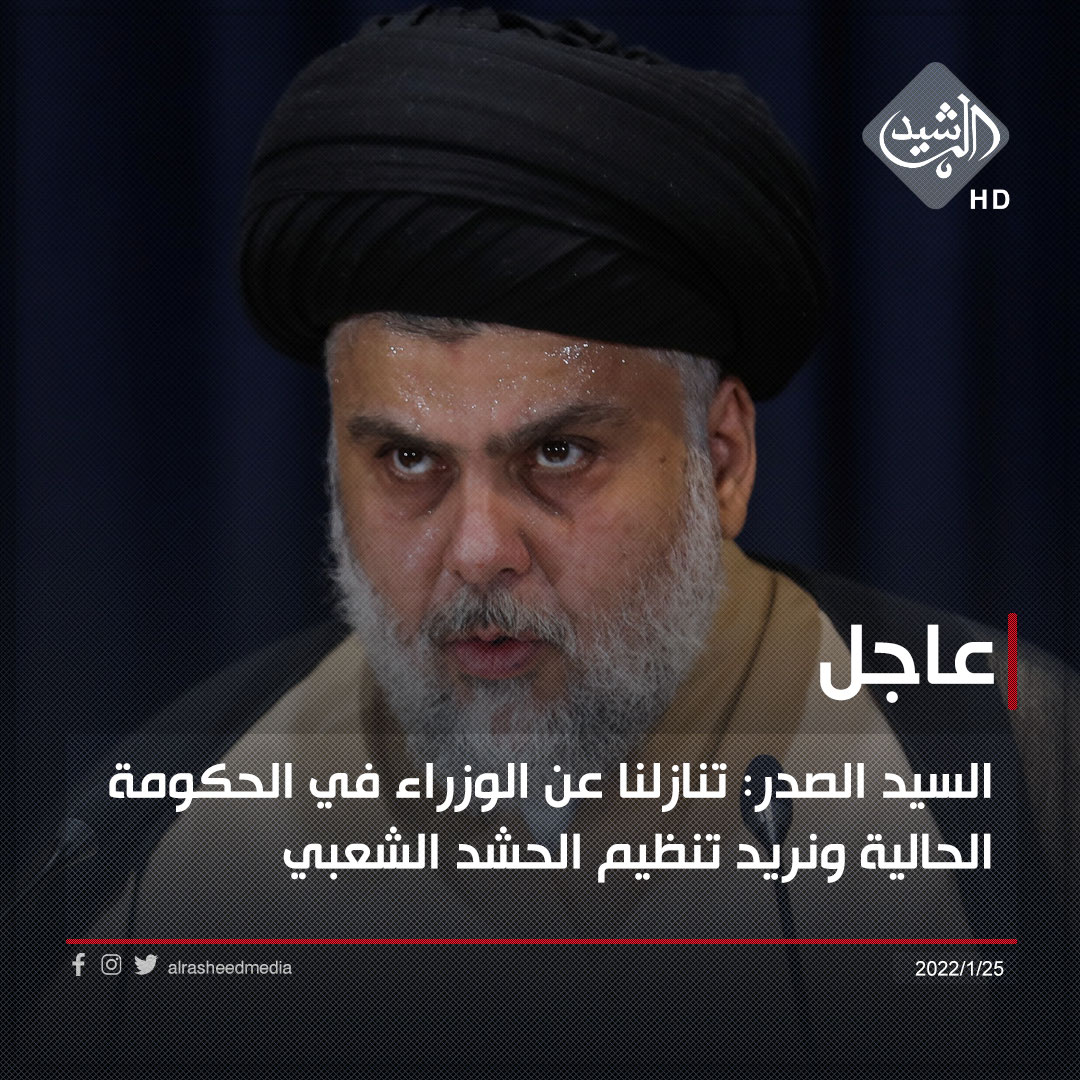 السيد الصدر: تنازلنا عن الوزراء في الحكومة الحالية ونريد تنظيم الحشد الشعبي