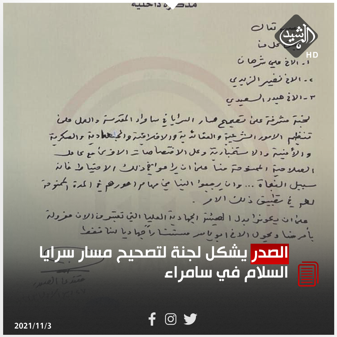 بالوثيقة.. الصدر يشكل لجنة لتصحيح مسار سرايا السلام في سامراء