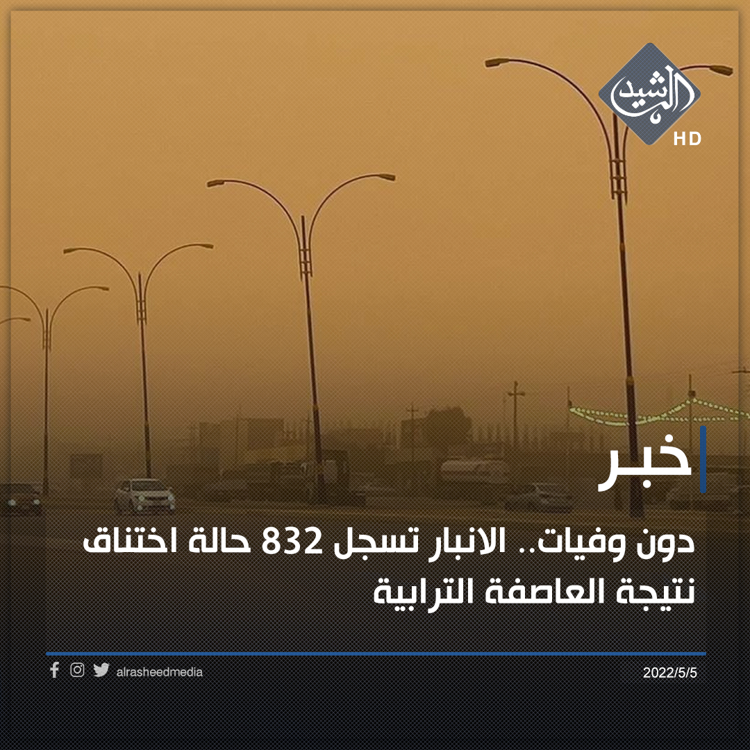 دون وفيات.. الانبار تسجل ٨٣٢ حالة اختناق نتيجة العاصفة الترابية
