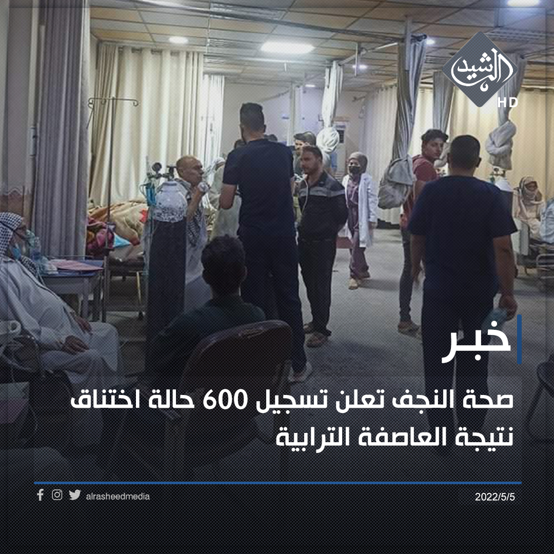 صحة النجف تعلن تسجيل ٦٠٠ حالة اختناق نتيجة العاصفة الترابية