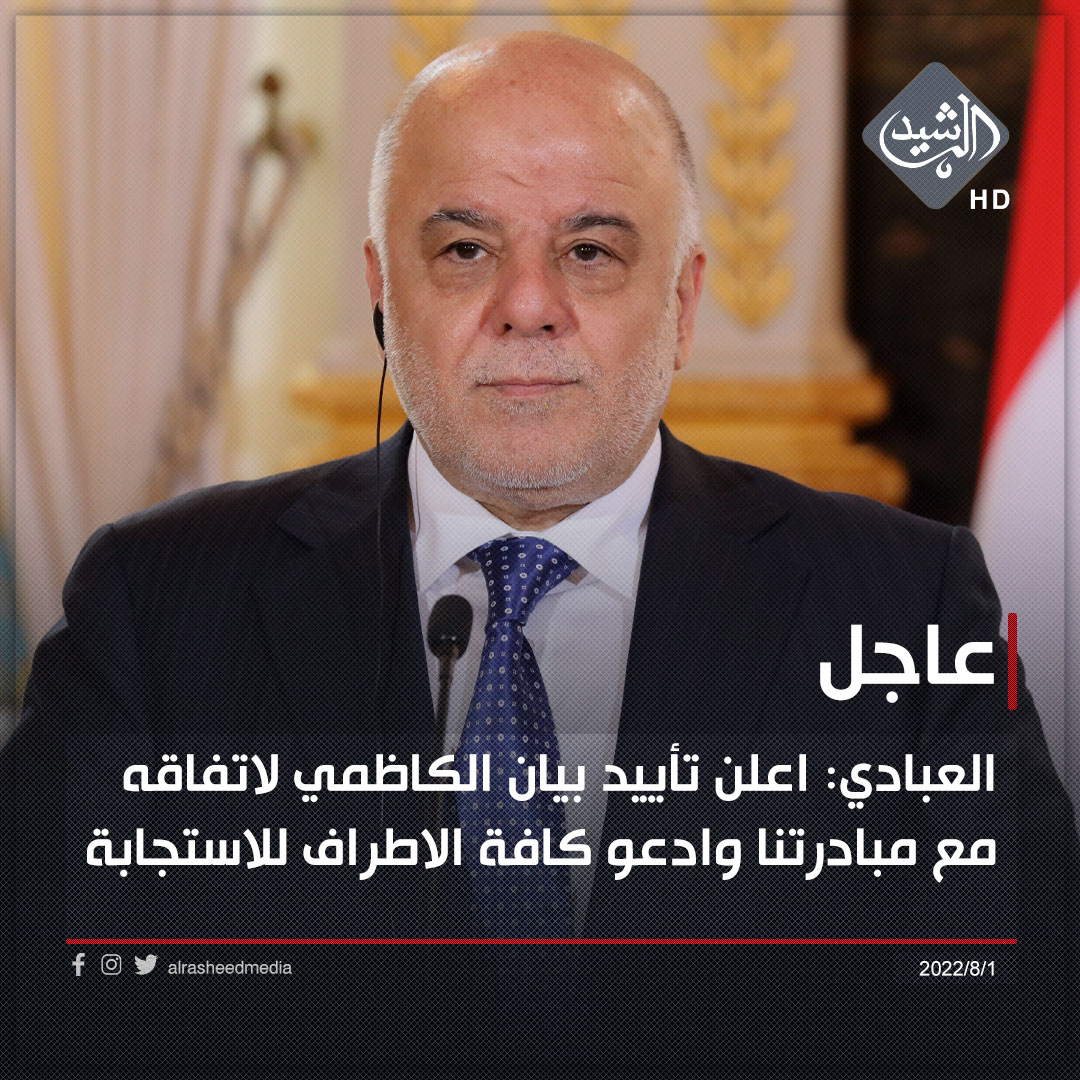 العبادي: اعلن تأييد بيان الكاظمي لاتفاقه مع مبادرتنا وادعو كافة الاطراف للاستجابة