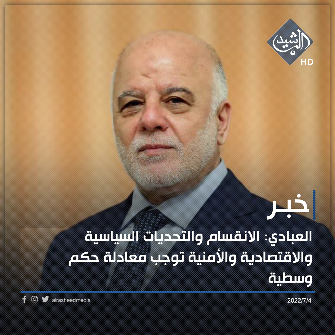 العبادي: الانقسام والتحديات السياسية والاقتصادية والأمنية توجب معادلة حكم وسطية