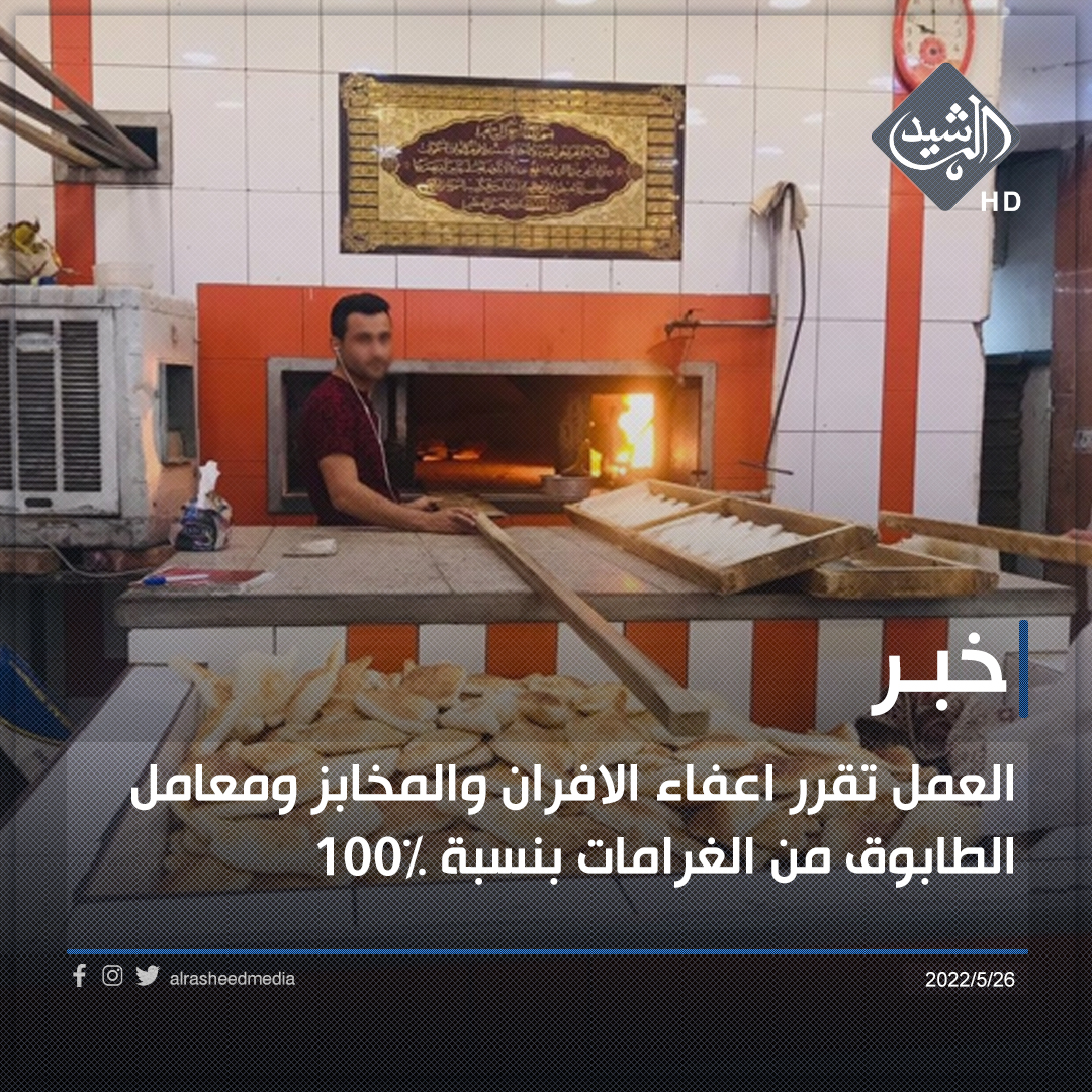 العمل تقرر اعفاء الافران والمخابز ومعامل الطابوق من الغرامات بنسبة 100%