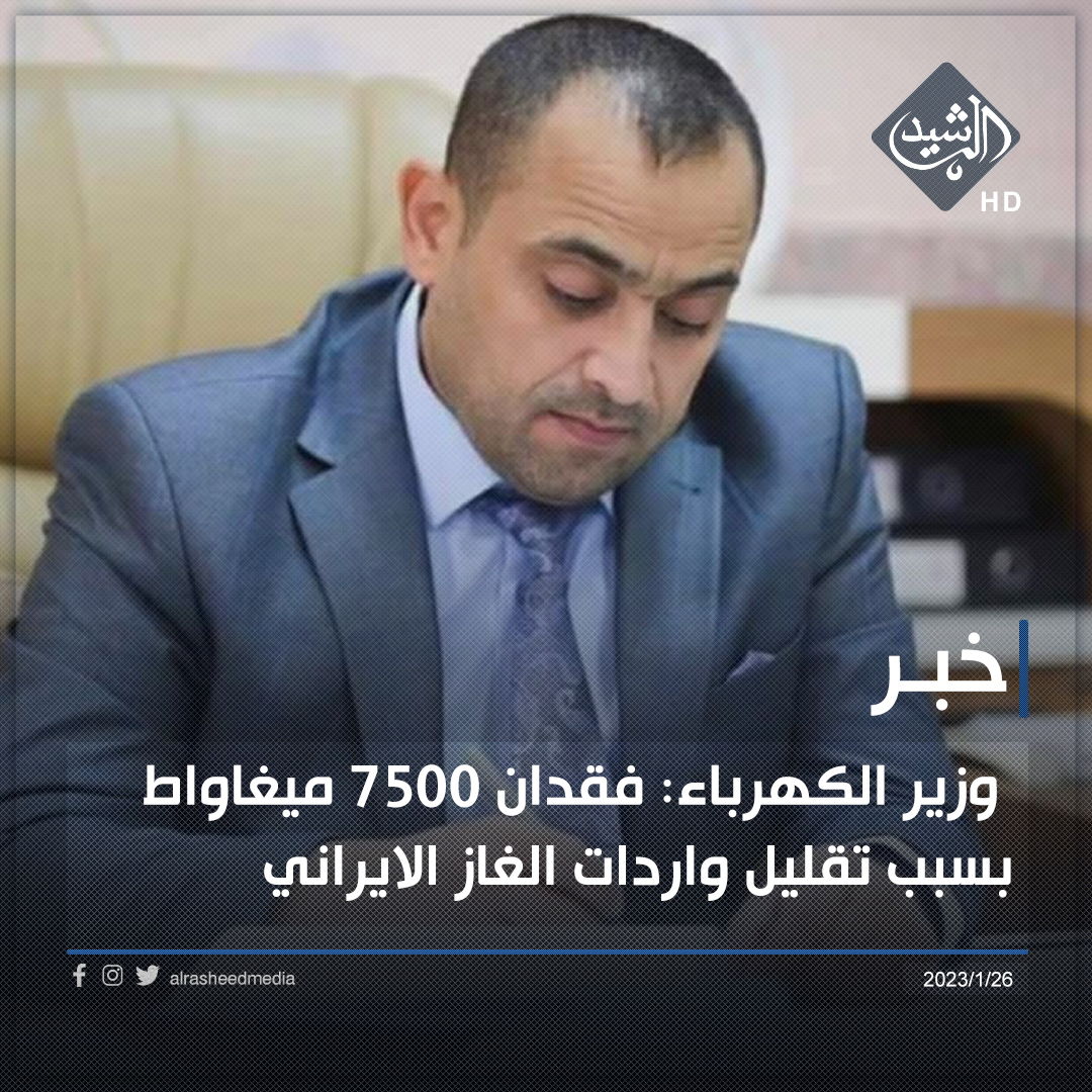 وزير الكهرباء: فقدان 7500 ميغاواط بسبب تقليل واردات الغاز الايراني