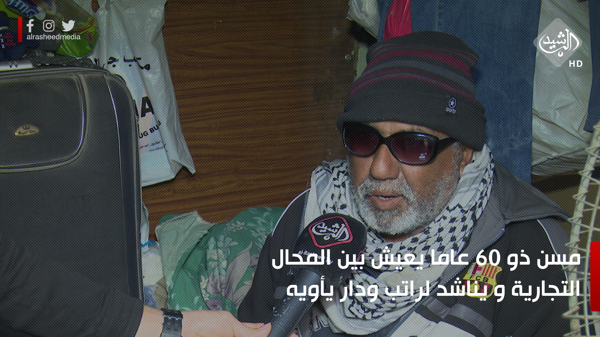 مسن ذو 60 عاما يعيش بين المحال التجارية و يناشد الخيرين والرعاية الاجتماعية لراتب ودار يأويه