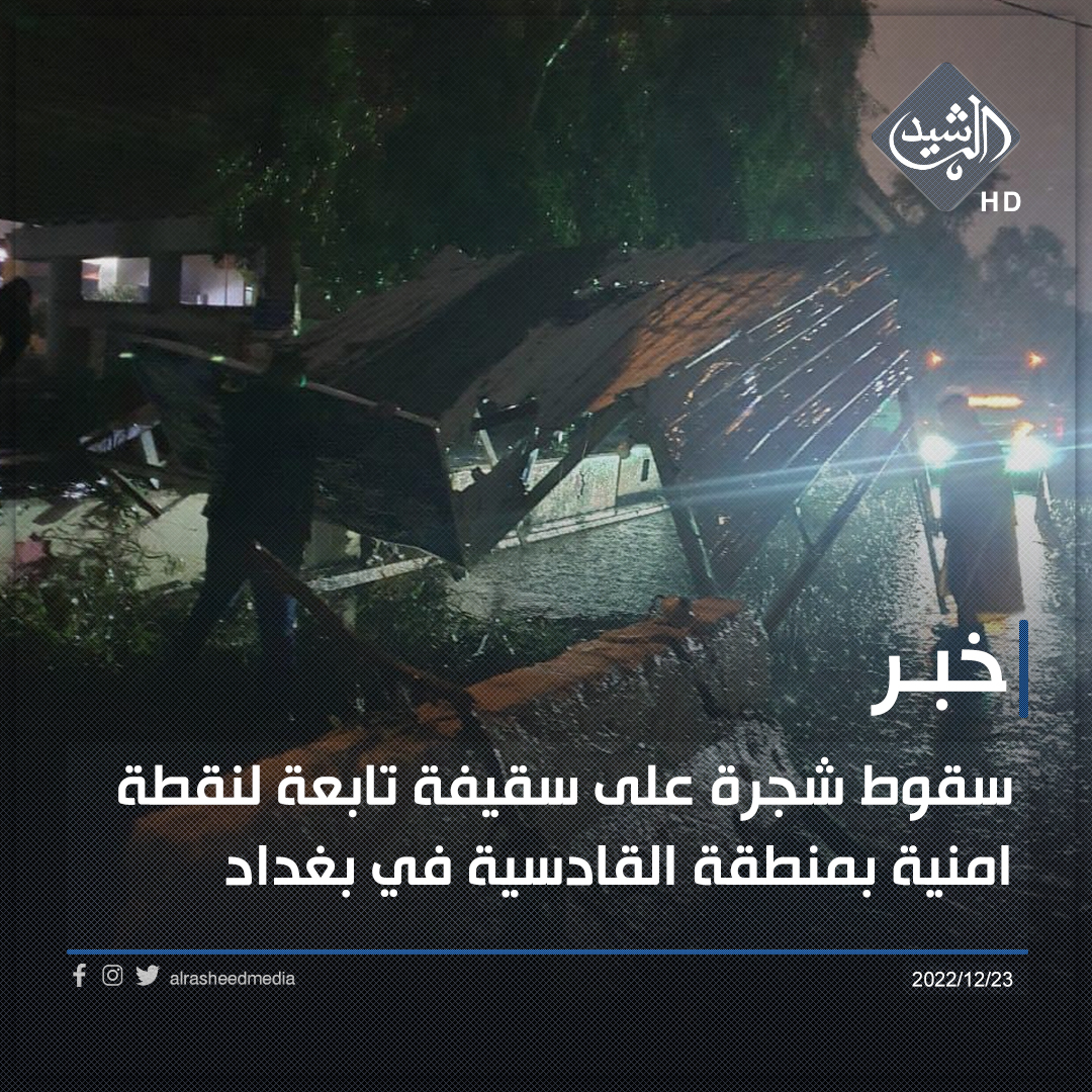 بالصور.. سقوط شجرة على سقيفة تابعة لنقطة امنية بمنطقة القادسية في بغداد