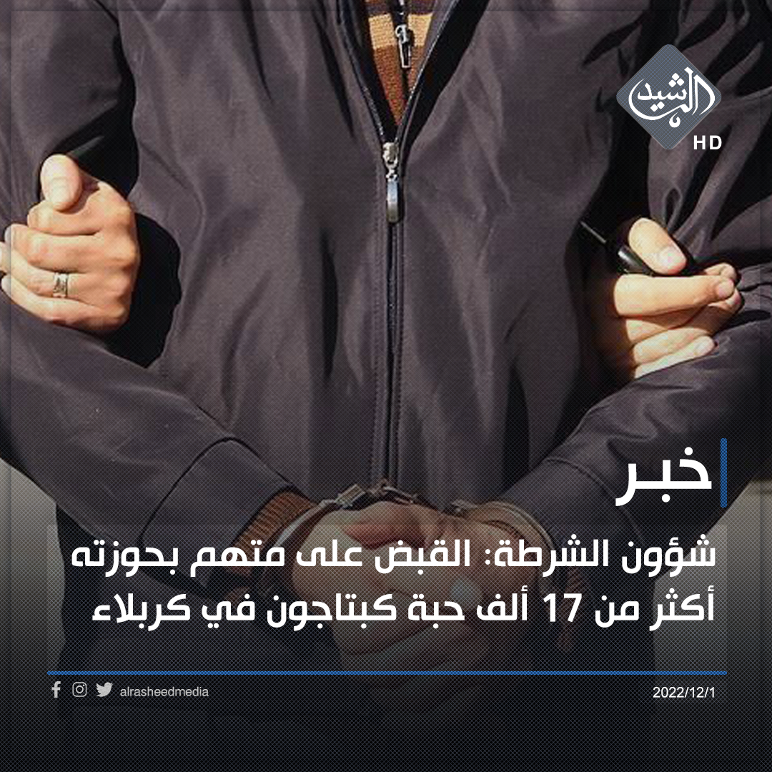 شؤون الشرطة: القبض على متهم بحوزته أكثر من 17 ألف حبة كبتاجون في كربلاء