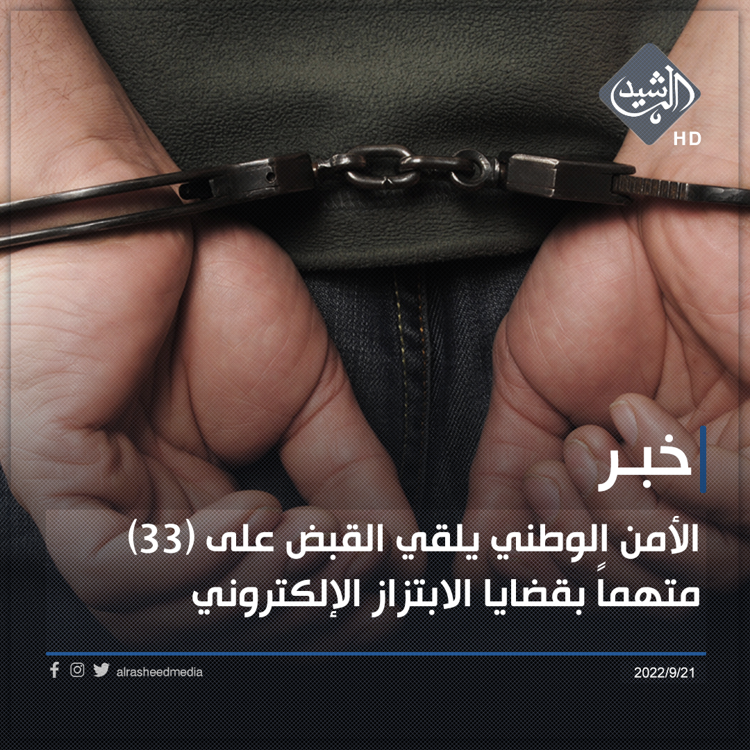 الأمن الوطني يلقي القبض على (33) متهماً بقضايا الابتزاز الإلكتروني