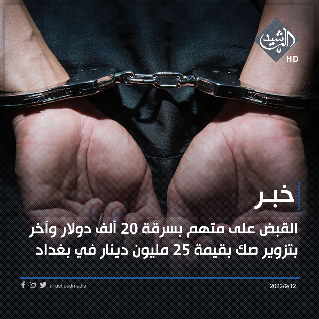 القبض على متهم بسرقة 20 ألف دولار وآخر بتزوير صك بقيمة 25 مليون دينار في بغداد