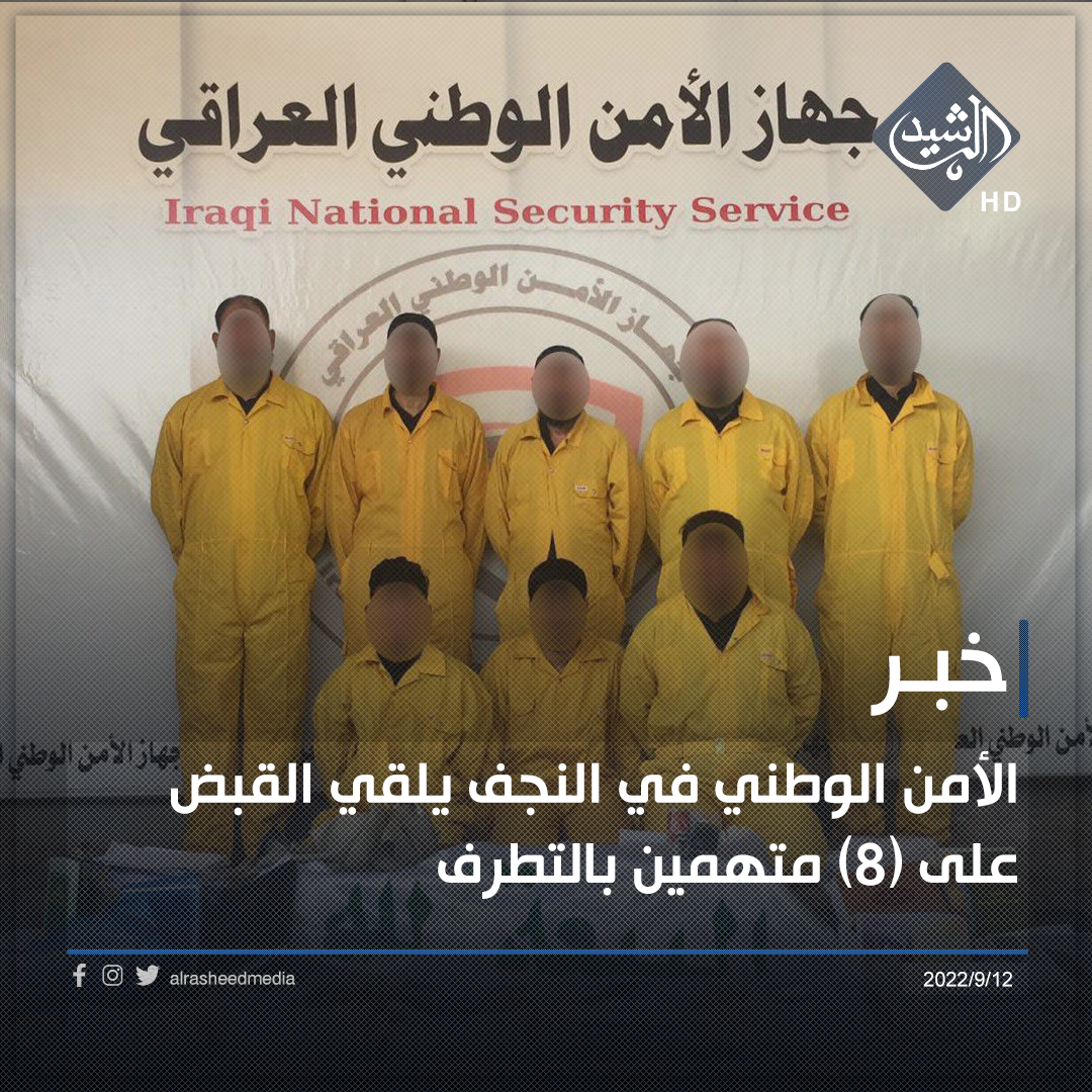 الأمن الوطني في النجف يلقي القبض على (8) متهمين بالتطرف