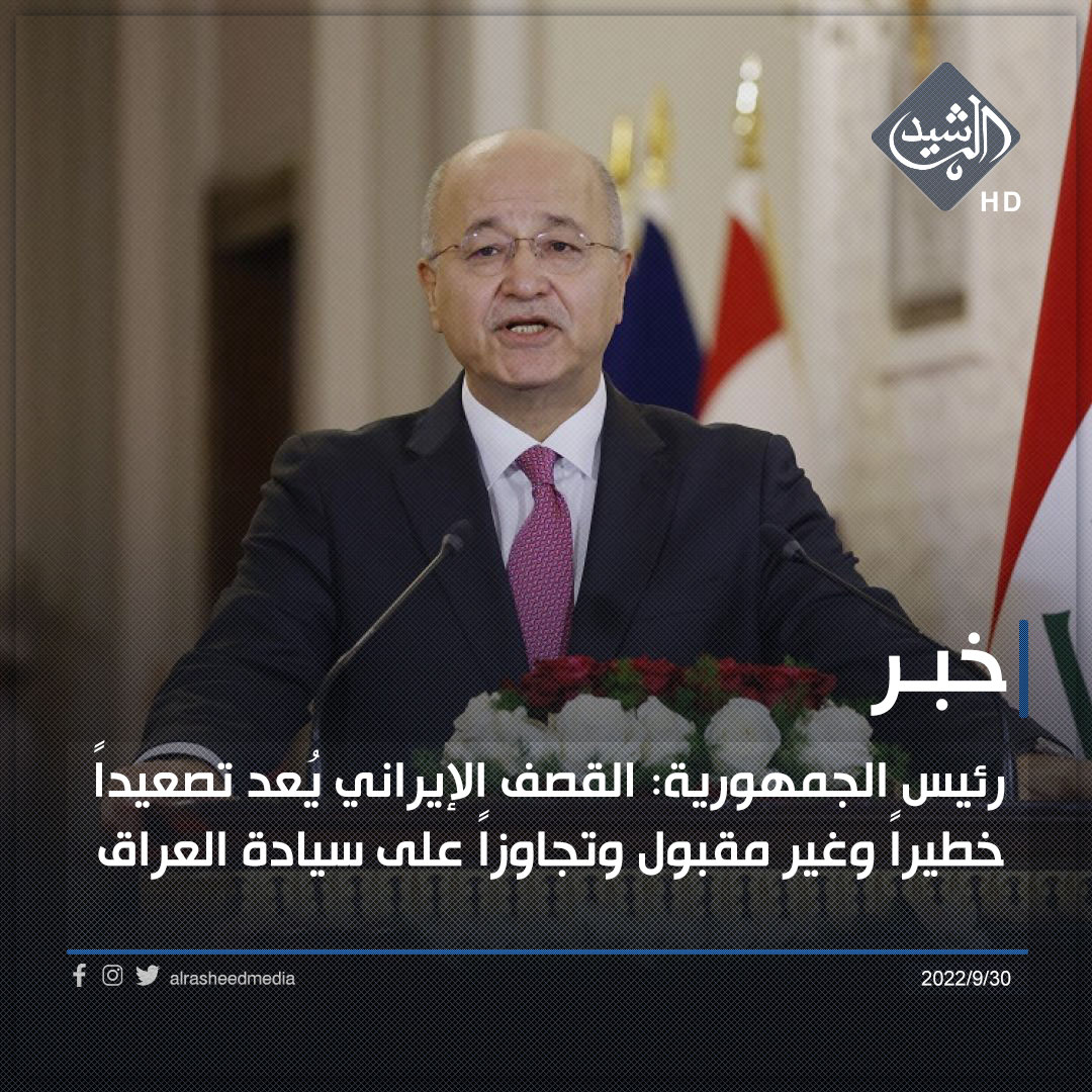 رئيس الجمهورية: القصف الإيراني يُعد تصعيداً خطيراً وغير مقبول وتجاوزاً على سيادة العراق