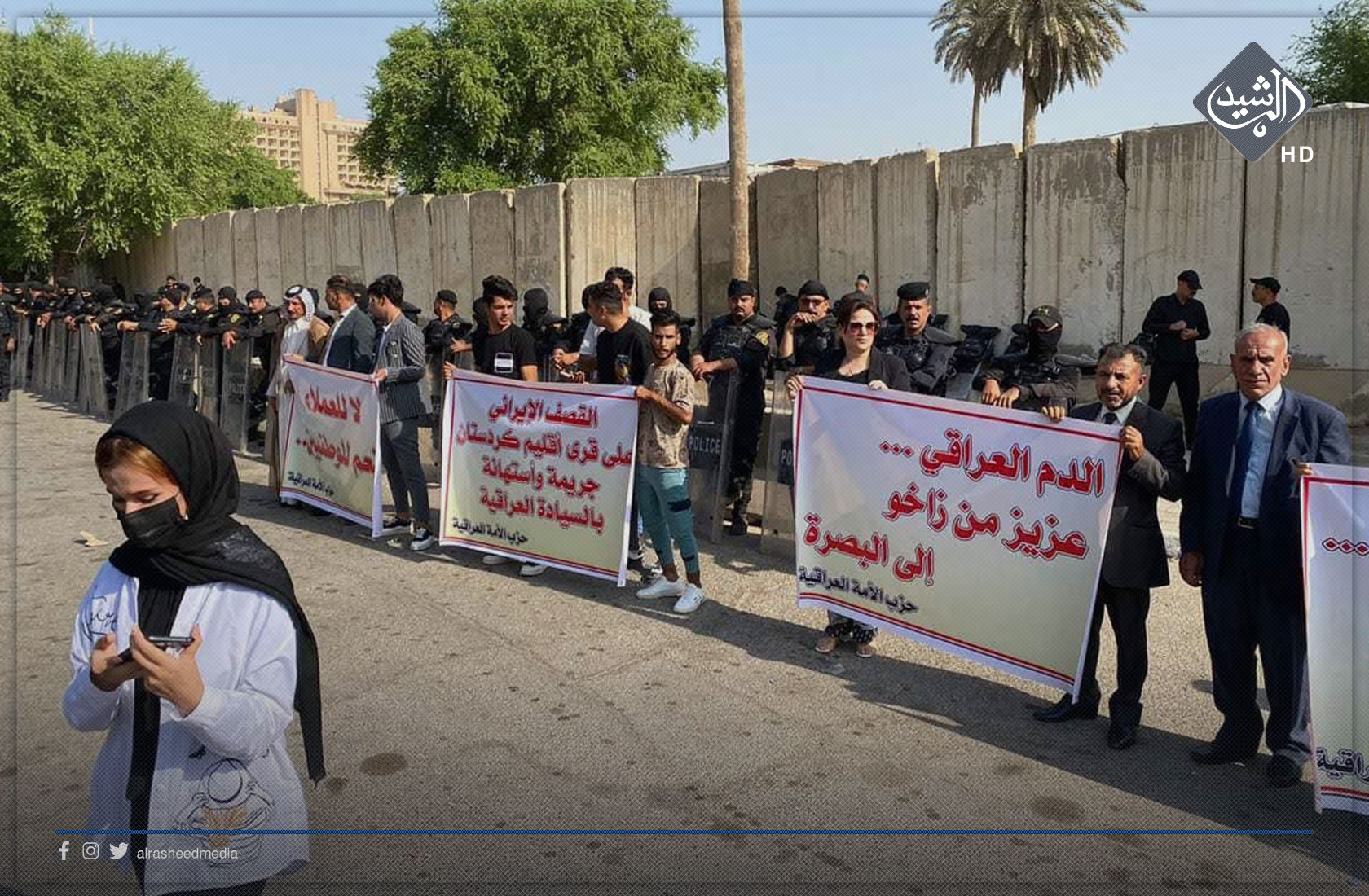 بالصور.. تظاهرة أمام السفارة الايرانية وسط بغداد احتجاجا على قصف إقليم كردستان