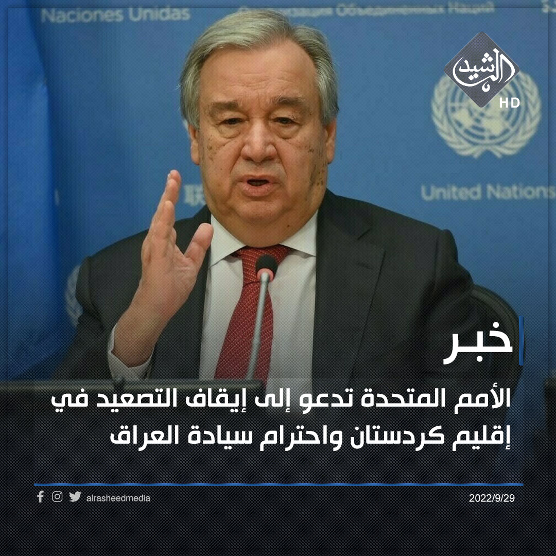الأمين العام للأمم المتحدة يدعو إلى إيقاف التصعيد في إقليم كردستان واحترام سيادة العراق ووحدة أراضيه