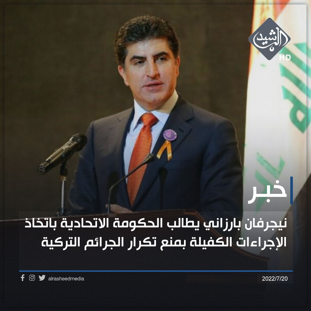 نيجرفان بارزاني يطالب الحكومة الاتحادية باتخاذ الإجراءات الكفيلة بمنع تكرار الجرائم التركية