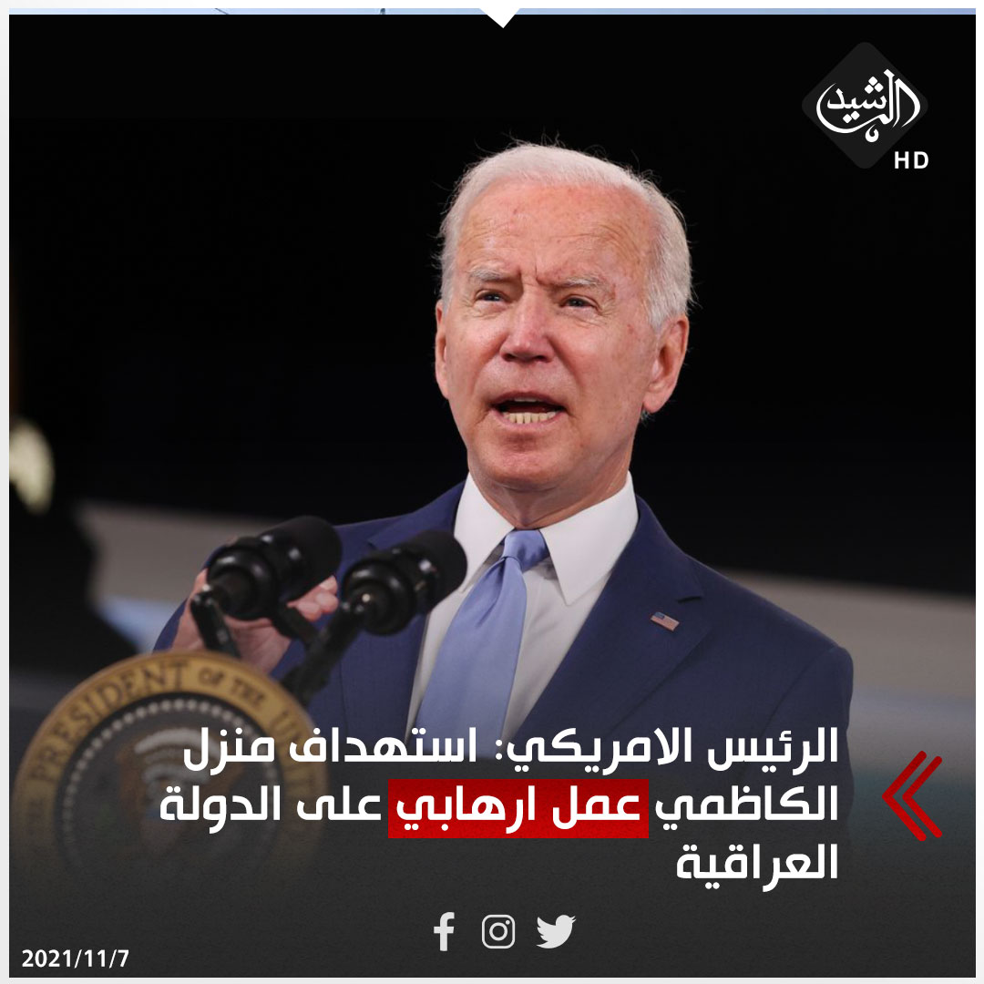 الرئيس الامريكي: استهداف منزل الكاظمي عمل ارهابي على الدولة العراقية