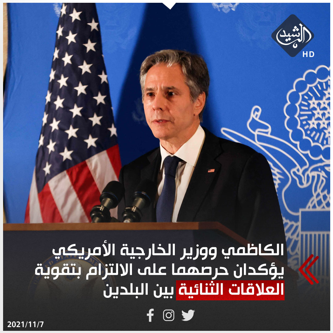 الكاظمي ووزير الخارجية الأمريكي يؤكدان حرصهما على الالتزام بتقوية العلاقات الثنائية بين البلدين