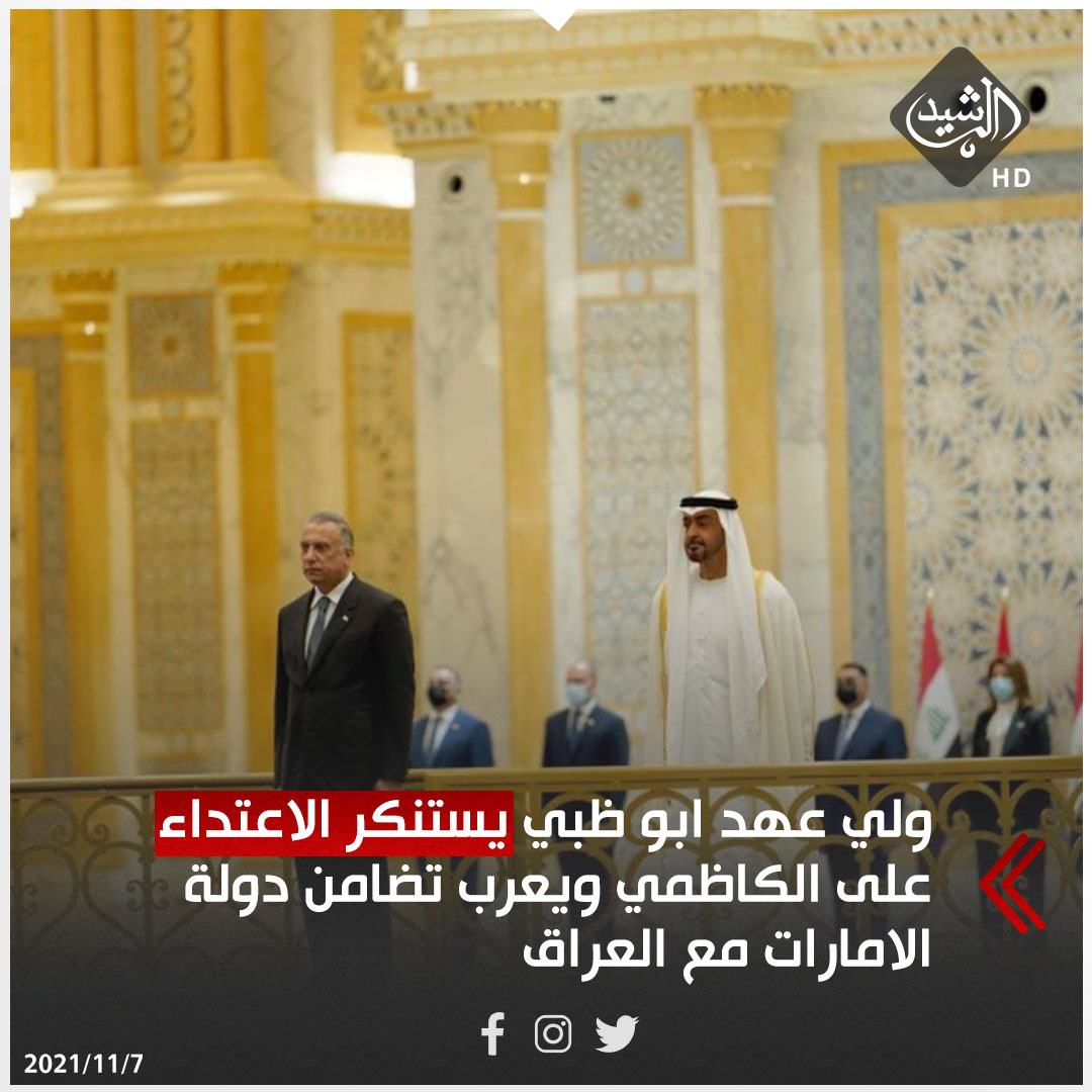 ولي عهد ابو ظبي يستنكر الاعتداء على الكاظمي ويعرب تضامن دولة الامارات مع العراق