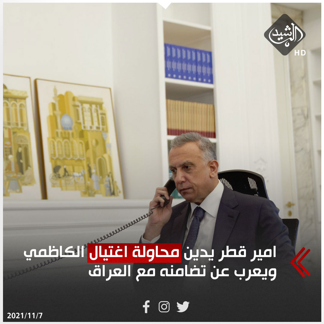 امير قطر يدين محاولة اغتيال الكاظمي ويعرب عن تضامنه مع العراق