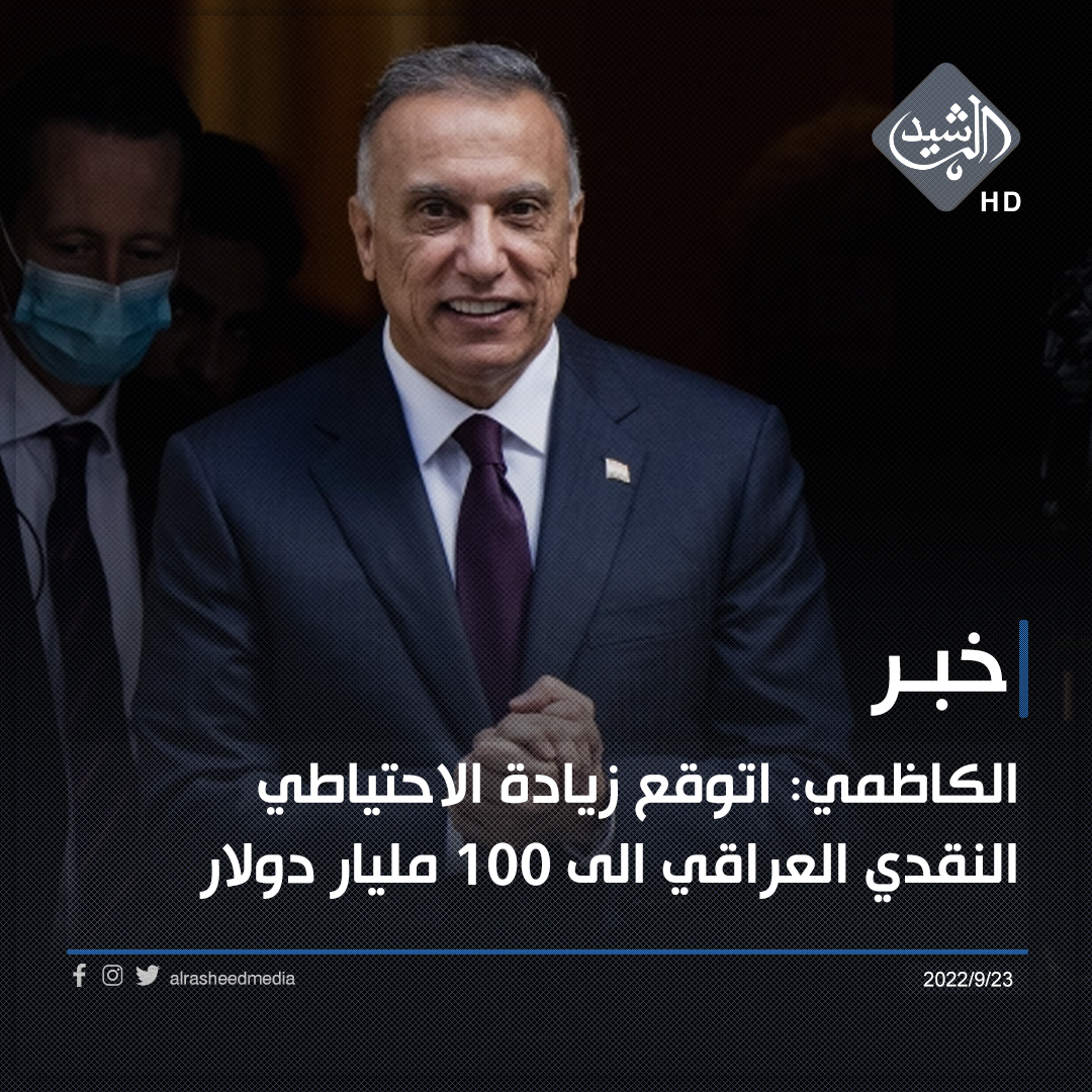 الكاظمي: اتوقع زيادة الاحتياطي النقدي العراقي الى 100 مليار دولار