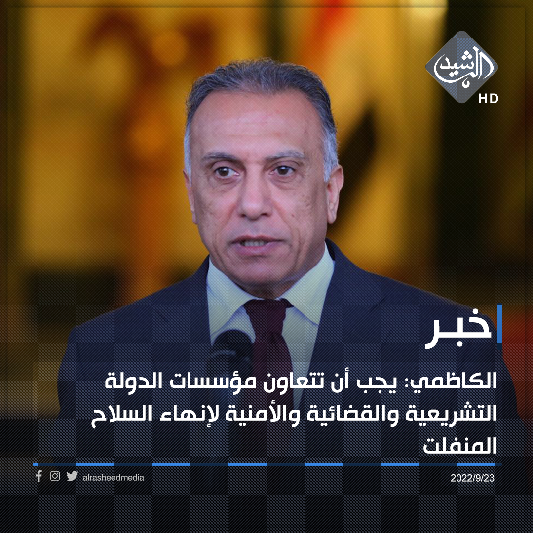 الكاظمي: يجب أن تتعاون مؤسسات الدولة التشريعية والقضائية والأمنية لإنهاء السلاح المنفلت