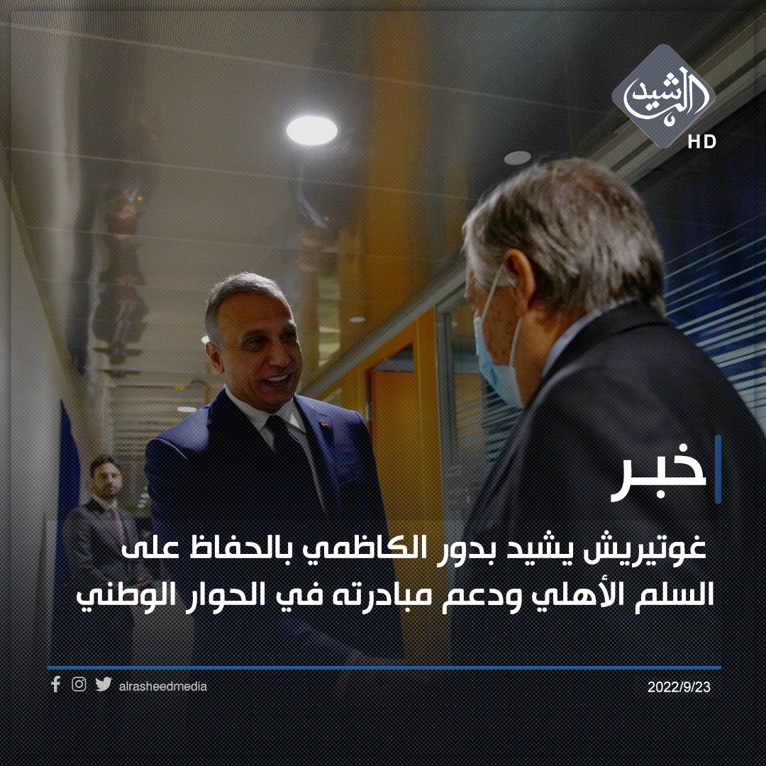 غوتيريش يشيد بدور الكاظمي بالحفاظ على السلم الأهلي ودعم مبادرته في الحوار الوطني