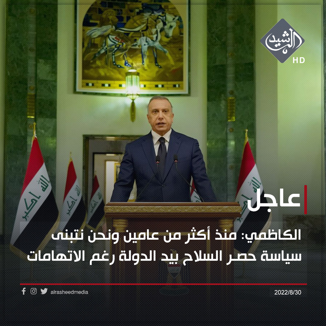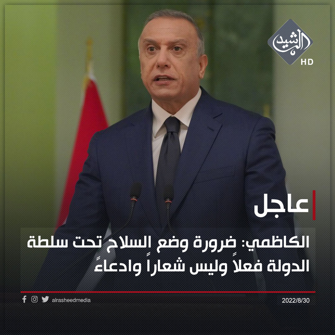 الكاظمي: ضرورة وضع السلاح تحت سلطة الدولة فعلاً وليس شعاراً وادعاءً