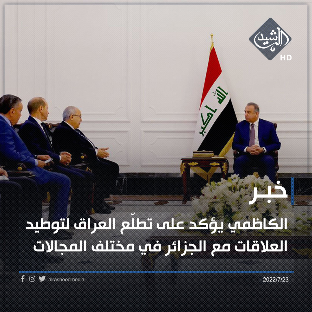الكاظمي يؤكد على تطلّع العراق لتوطيد العلاقات مع الجزائر في مختلف المجالات
