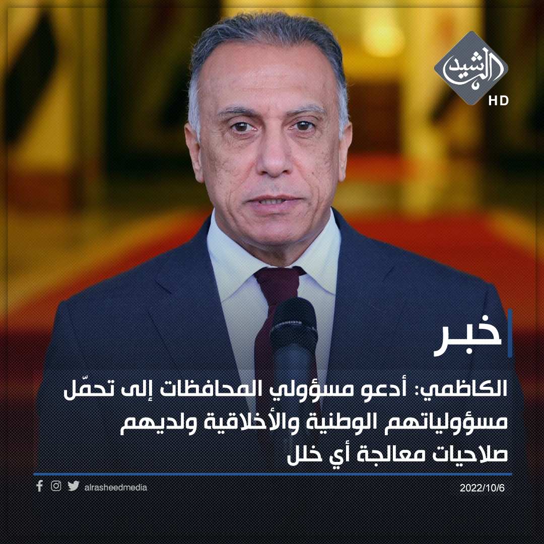 الكاظمي: أدعو مسؤولي المحافظات إلى تحمّل مسؤولياتهم الوطنية والأخلاقية ولديهم صلاحيات معالجة أي خلل