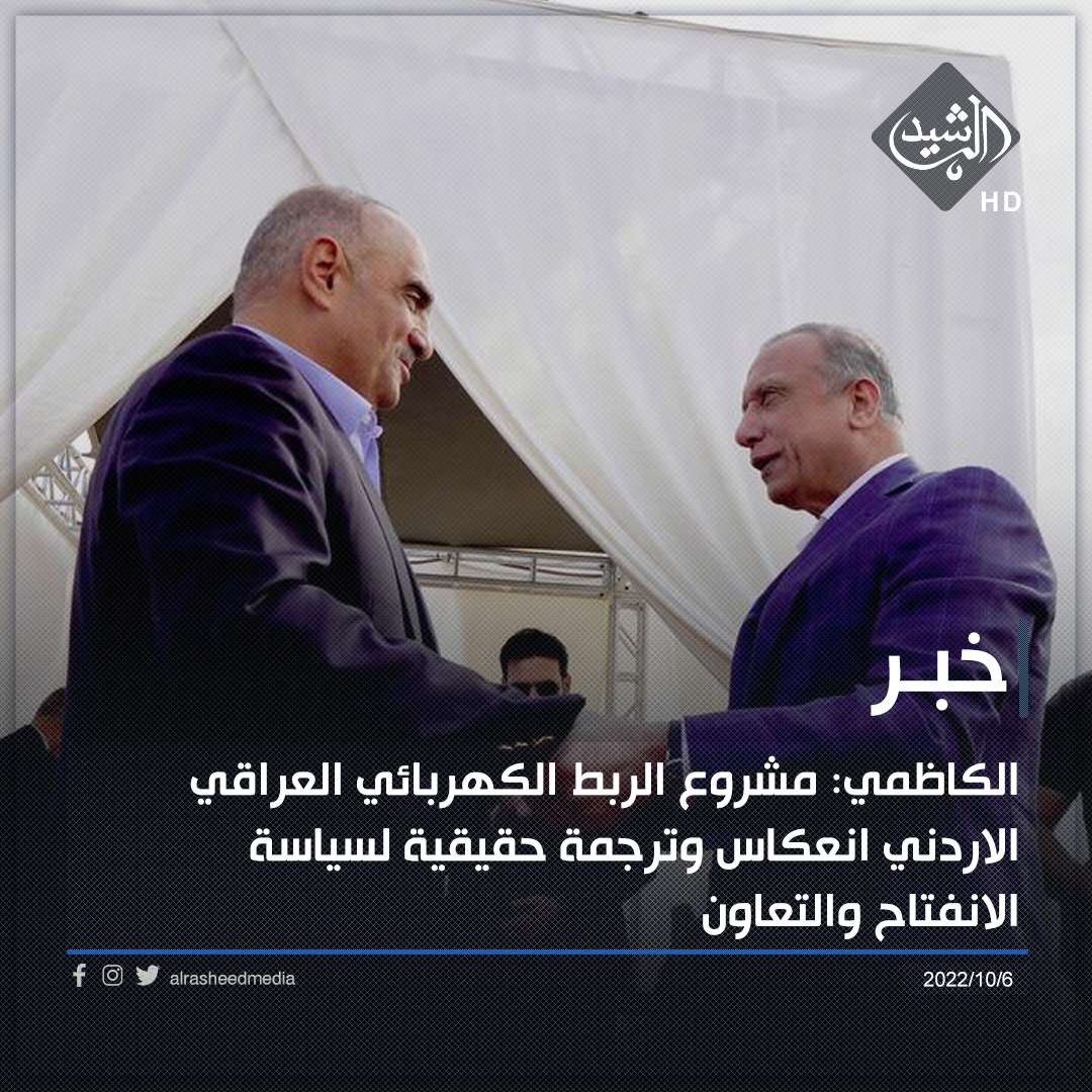الكاظمي: مشروع الربط الكهربائي العراقي الاردني انعكاس وترجمة حقيقية لسياسة الانفتاح والتعاون
