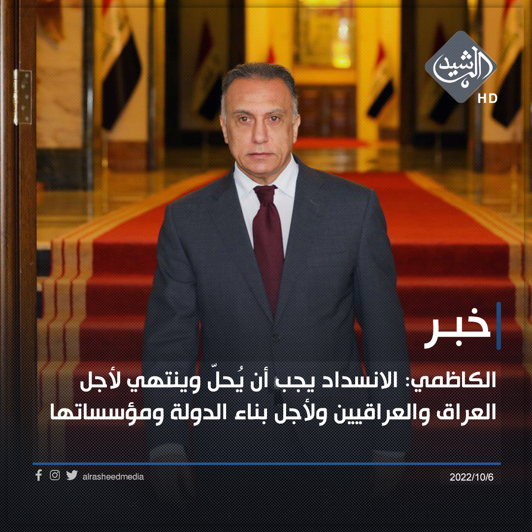الكاظمي: الانسداد يجب أن يُحلّ وينتهي لأجل العراق والعراقيين ولأجل بناء الدولة ومؤسساتها