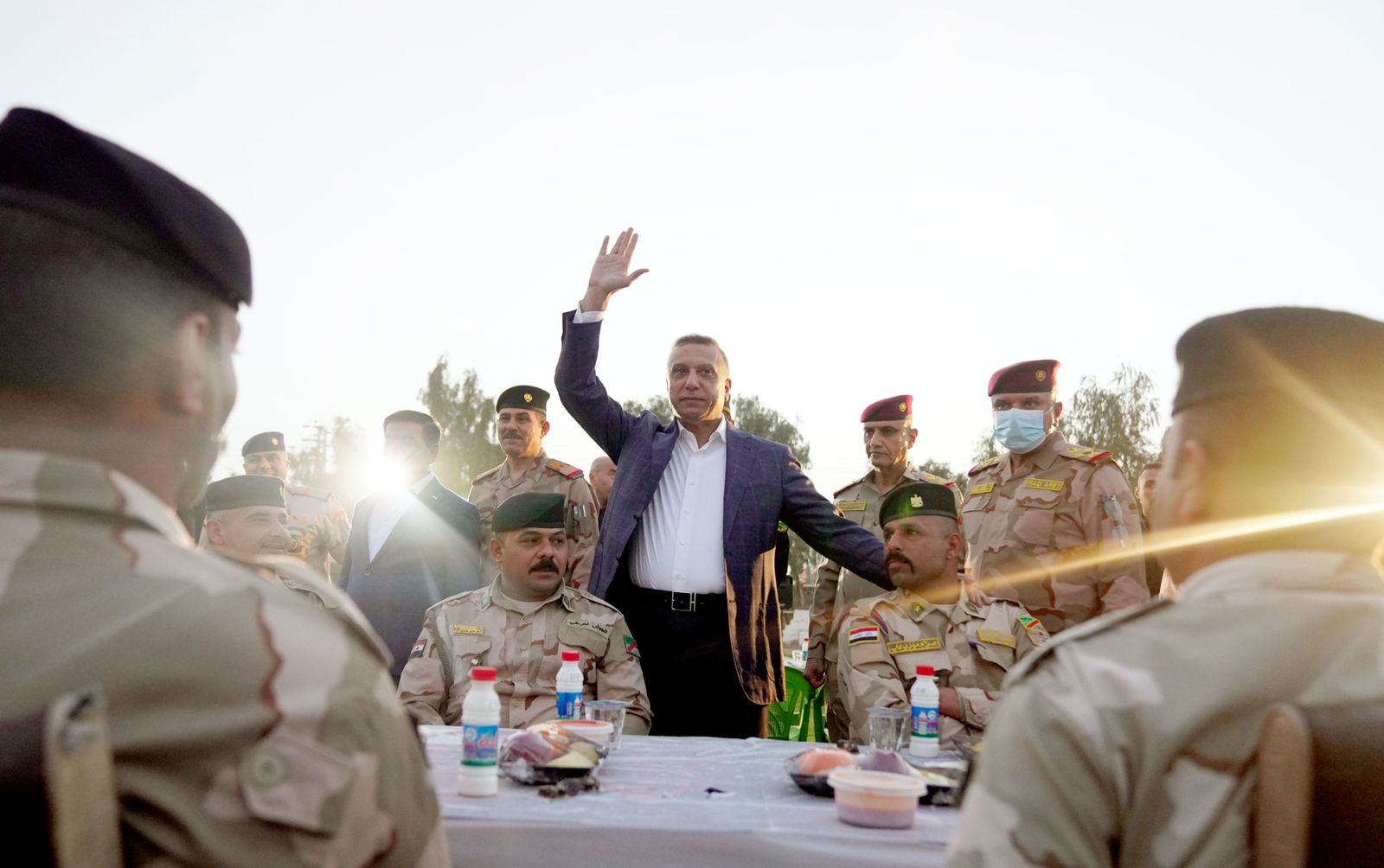الكاظمي يتفقّد مقر الفرقة 17 للجيش العراقي ويشارك مقاتليها مائدة الإفطار