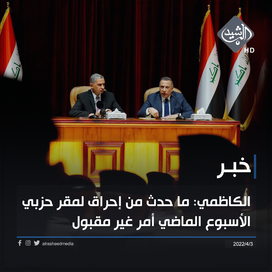 الكاظمي: ما حدث من إحراق لمقر حزبي الأسبوع الماضي أمر غير مقبول