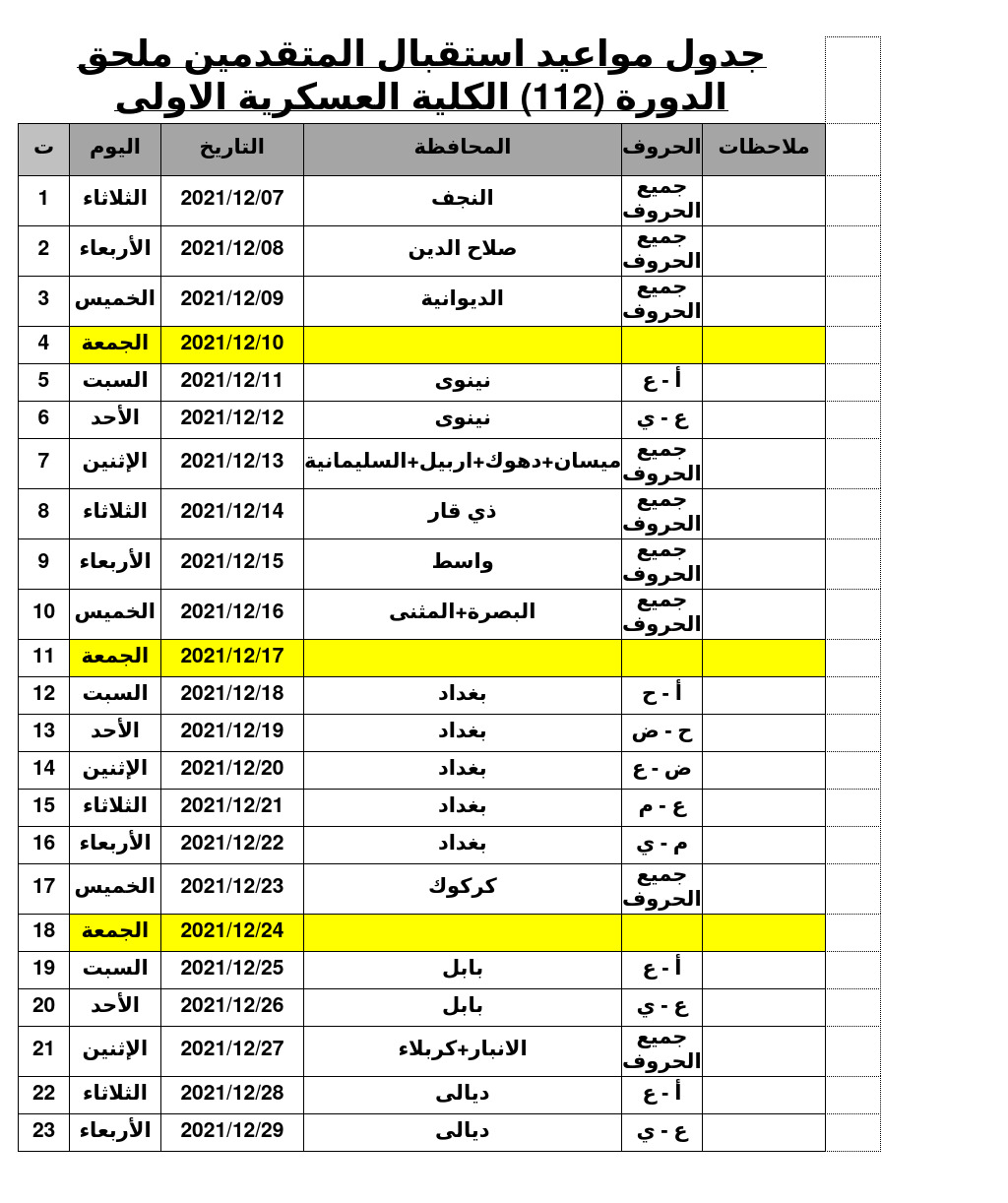 الرشيد تنشر جدول مراجعة المتقدمين للدورة ١١٢ الى الكلية العسكرية في الرستمية