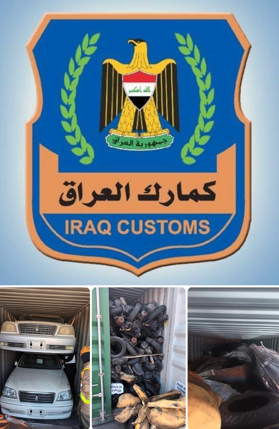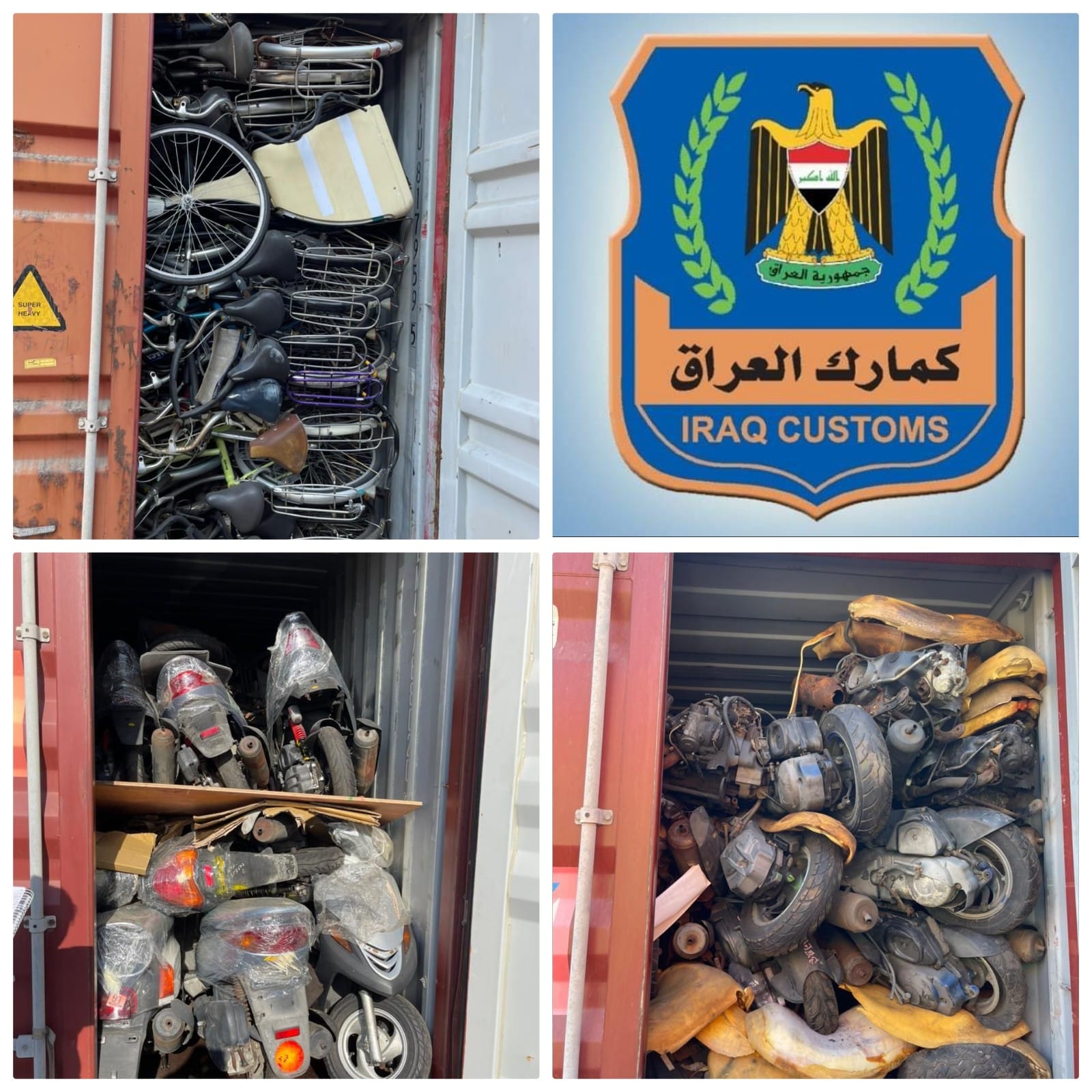 الكمارك: ضبط عجلات ودراجات مستعملة مخالفة لشروط الاستيراد في ام قصر الشمالي