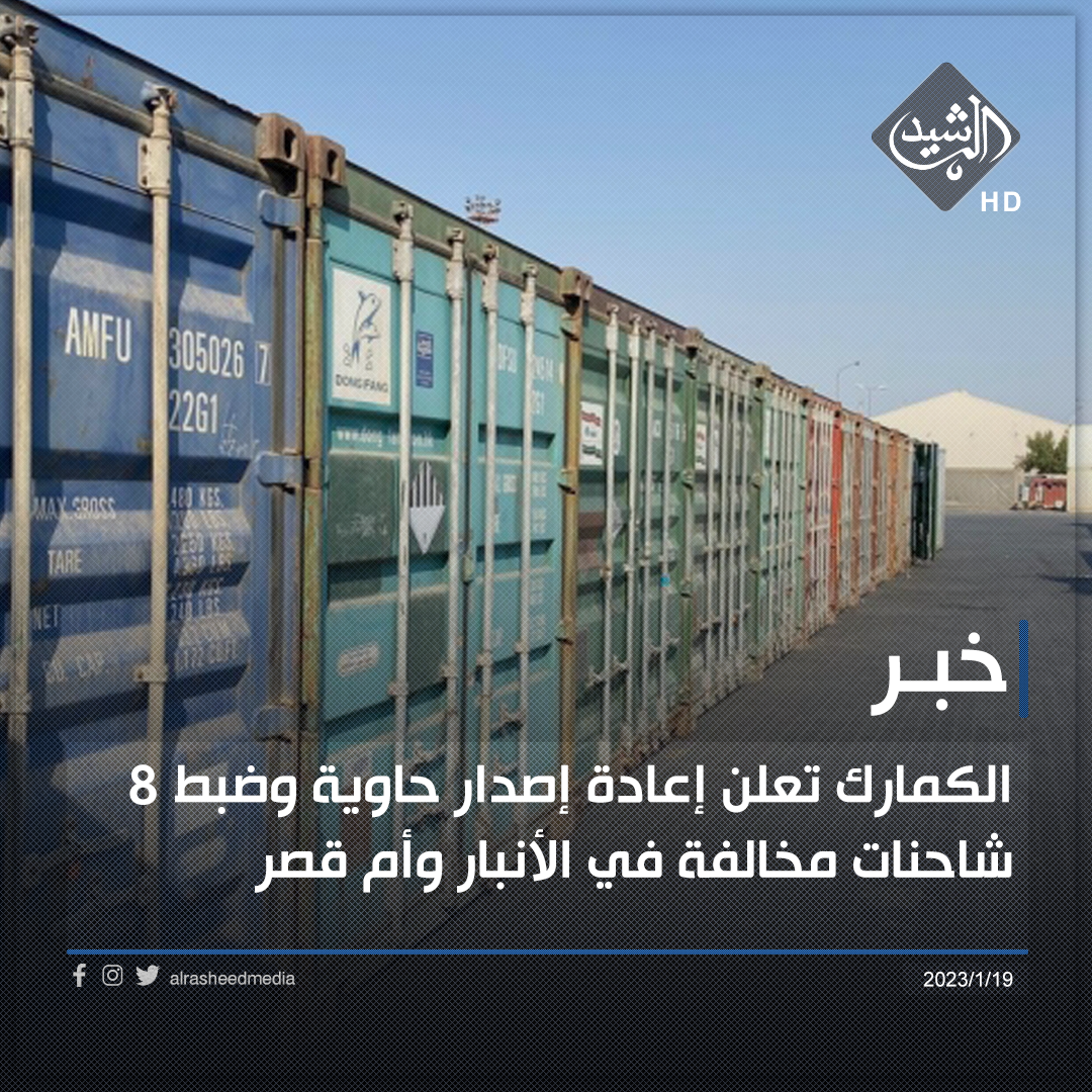 الكمارك تعلن إعادة إصدار حاوية وضبط 8 شاحنات مخالفة في الأنبار وأم قصر