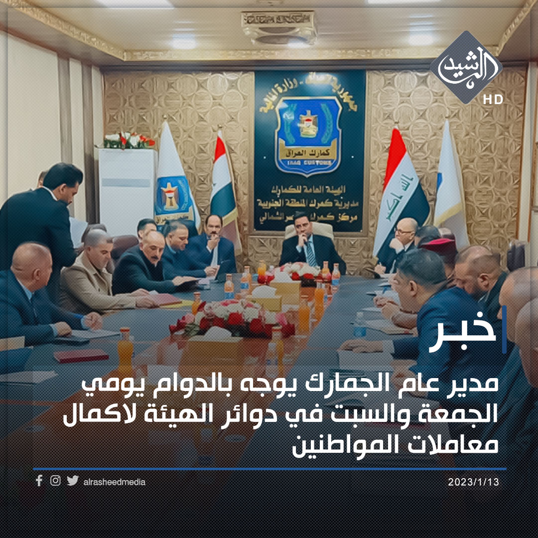 مدير عام الجمارك يوجه بالدوام يومي الجمعة والسبت في دوائر الهيئة لاكمال معاملات المواطنين