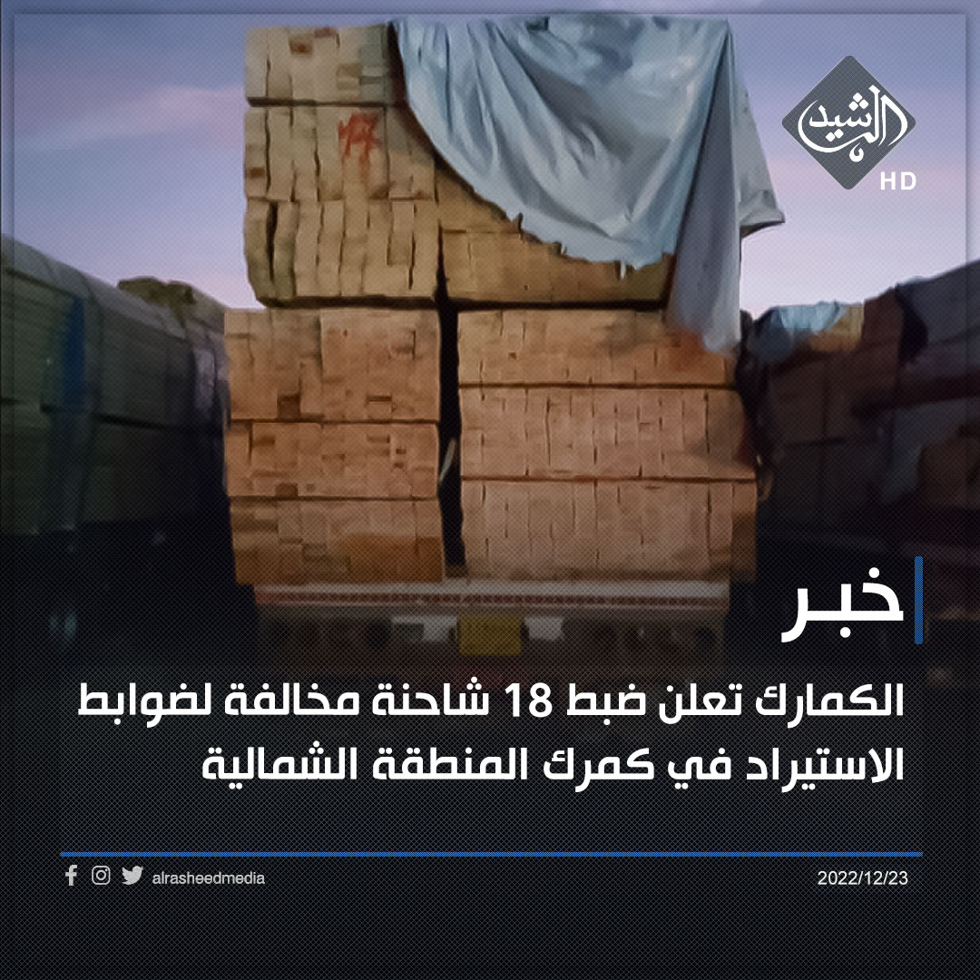 الجمارك تعلن ضبط 18 شاحنة مخالفة لضوابط الاستيراد في كمرك المنطقة الشمالية