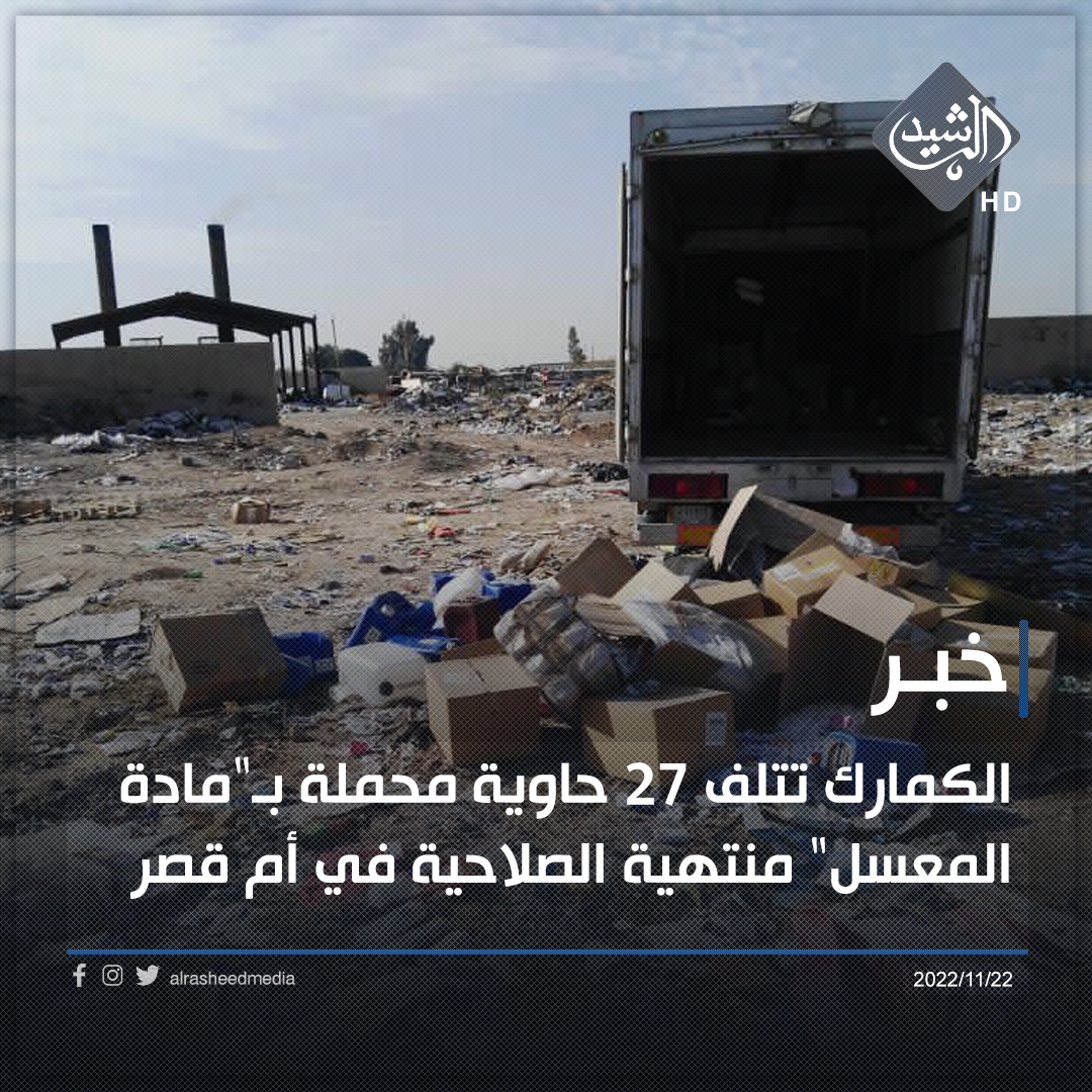 الكمارك تتلف ٢٧ حاوية محملة بـ"مادة المعسل" منتهية الصلاحية في أم قصر