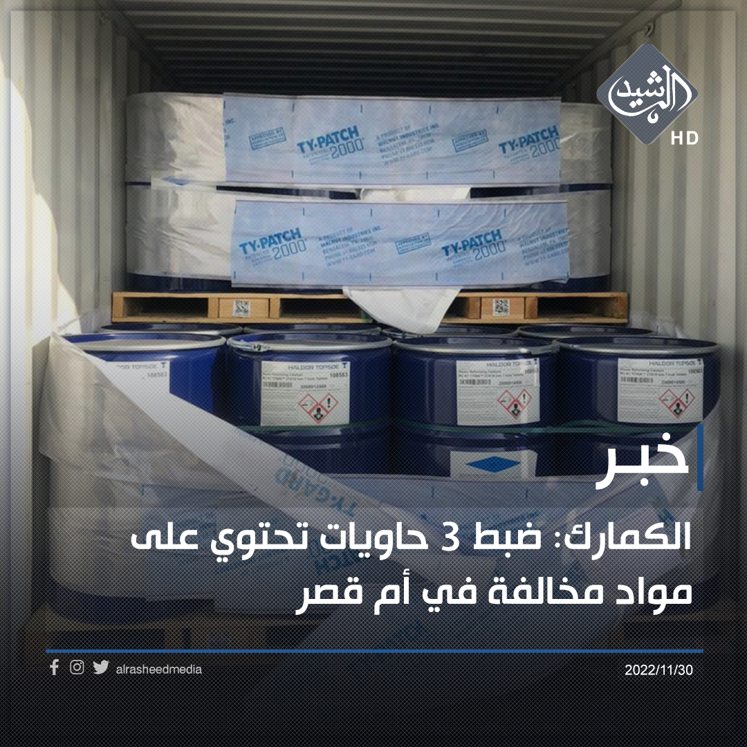 الكمارك: ضبط 3 حاويات تحتوي على مواد مخالفة في أم قصر