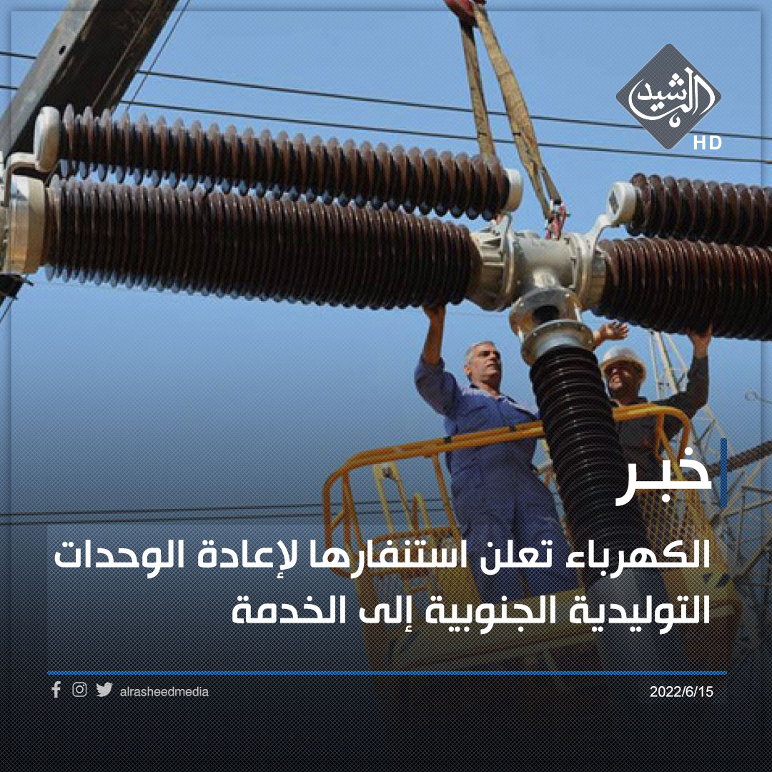 الكهرباء تعلن استنفارها لإعادة الوحدات التوليدية الجنوبية إلى الخدمة