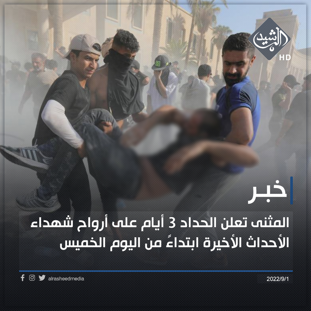 المثنى تعلن الحداد 3 أيام على أرواح شهداء الأحداث الأخيرة ابتداءً من اليوم الخميس