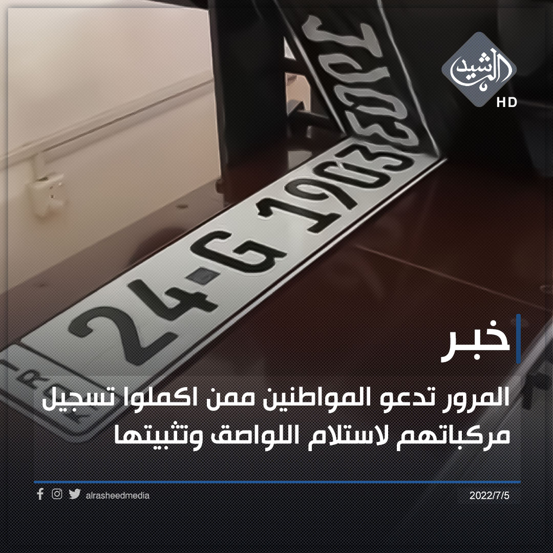المرور تدعو المواطنين ممن اكملوا تسجيل مركباتهم لاستلام اللواصق وتثبيتها