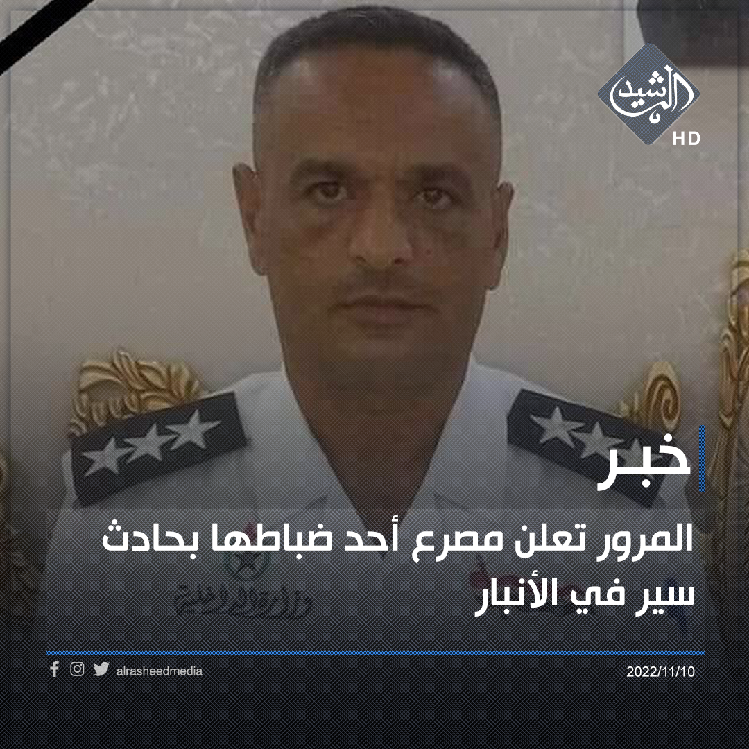 المرور تعلن مصرع أحد ضباطها بحادث سير في الأنبار