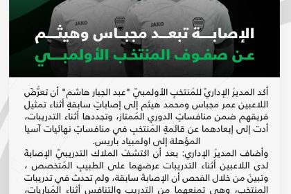 الإصابة تبعد عمر مجباس ومحمد هيثم عن صفوف المنتخب الأولمبي