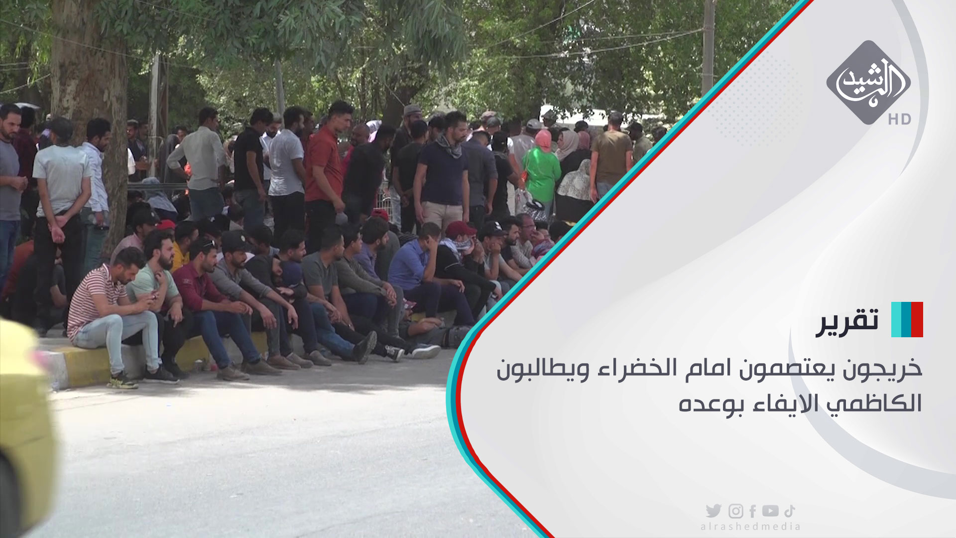 خريجون يعتصمون امام الخضراء ويطالبون الكاظمي الايفاء بوعده