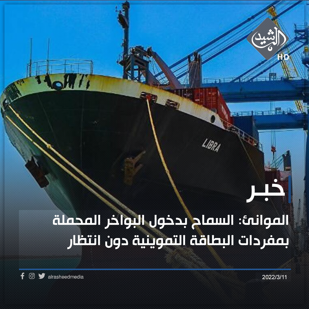 الموانئ: السماح بدخول البواخر المحملة بمفردات البطاقة التموينية دون انتظار
