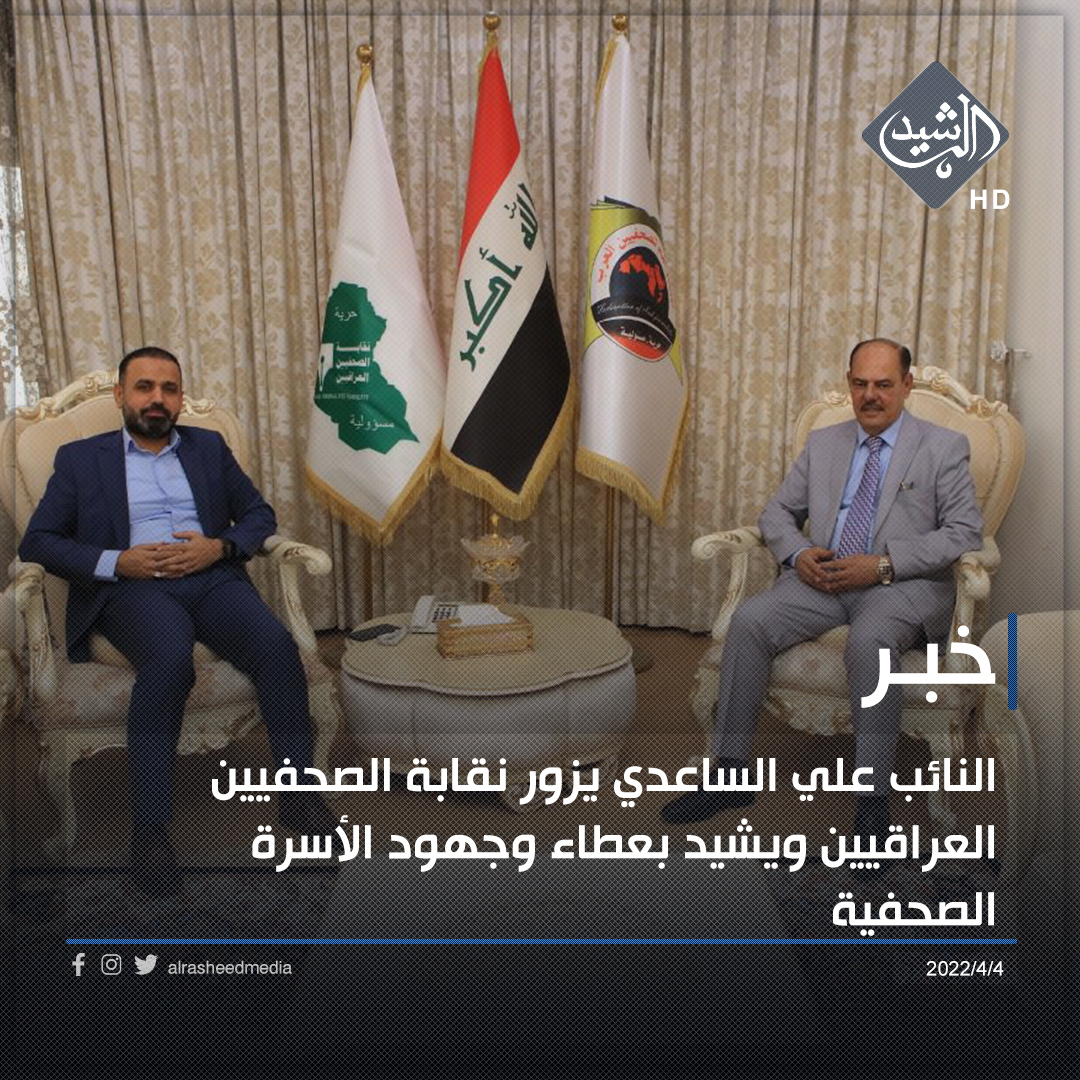 النائب علي الساعدي يزور نقابة الصحفيين العراقيين ويشيد بعطاء وجهود الأسرة الصحفية