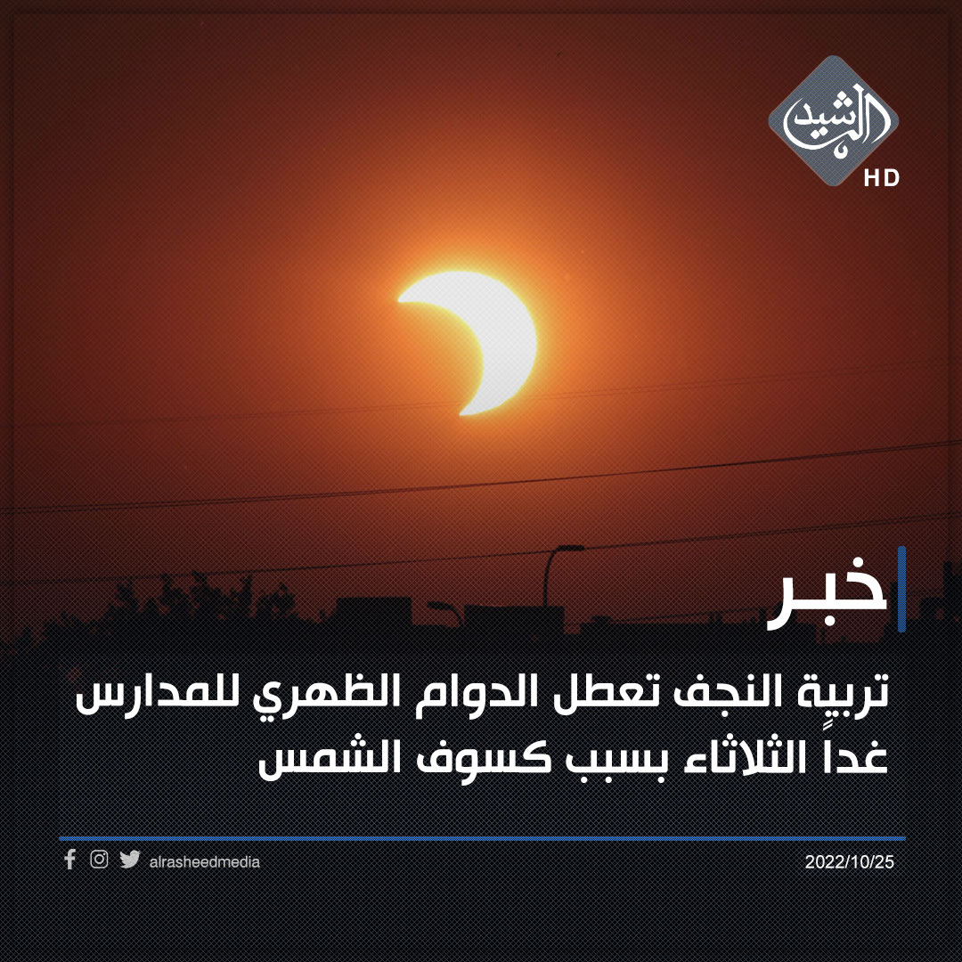 تربية النجف تعطل دوام المدارس (الدوام الظهري فقط) غداً الثلاثاء بسبب كسوف الشمس