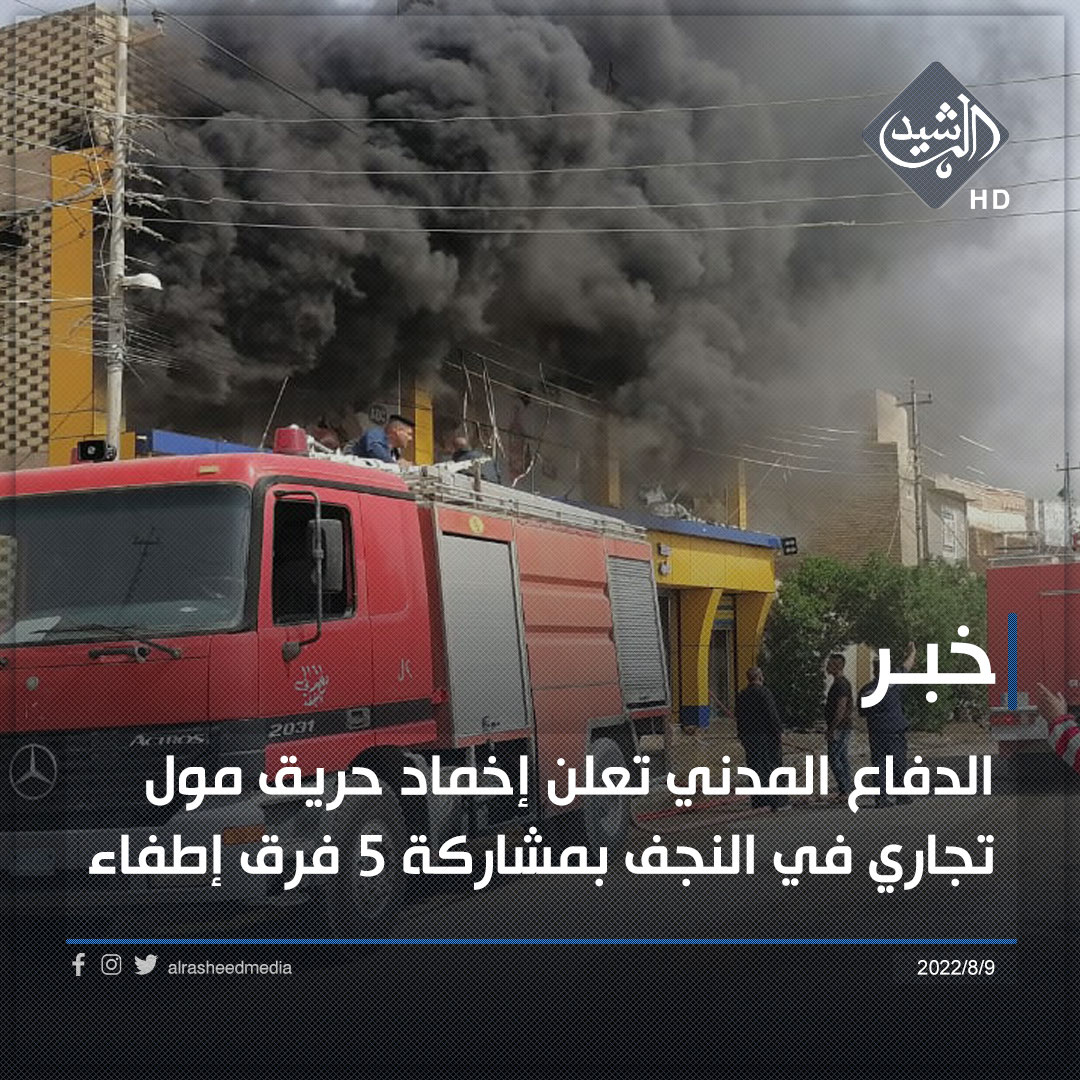 مديرية الدفاع المدني تعلن إخماد حريق مول تجاري في النجف بمشاركة 5 فرق إطفاء