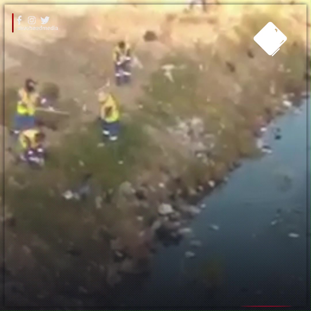 "منظر مقزز".. عمال يرمون النفايات في شاطئ النهر قرب جسر التقاعد (فيديو)
